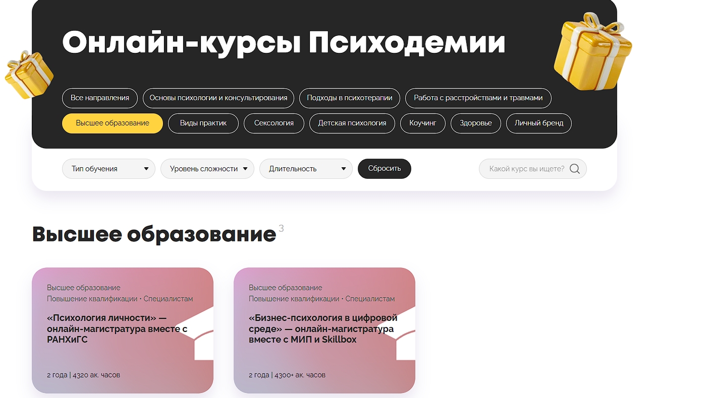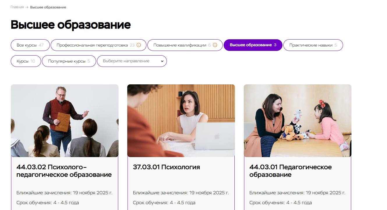 - ✅ Широчайший выбор специализаций психологии — более 10 направлений