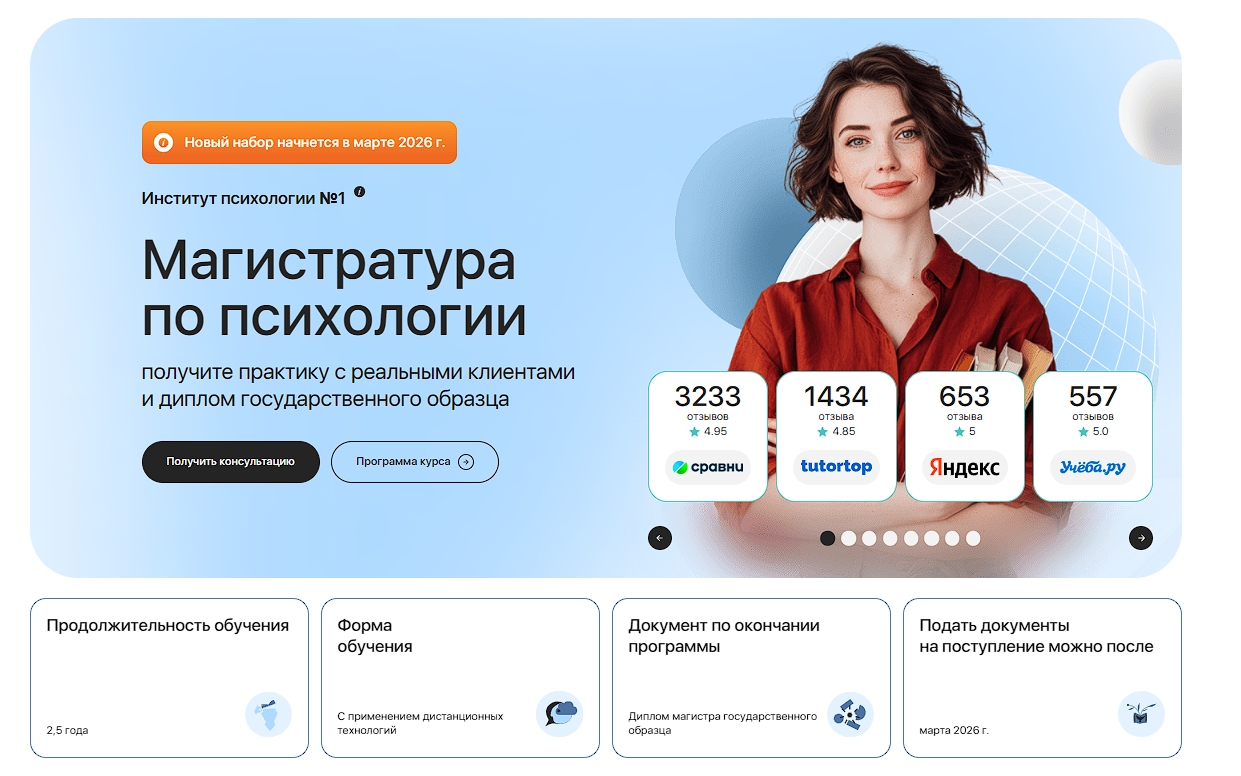 💬 Типичный отзыв студента: "Поступила в магистратуру после бакалавриата по другой специальности. Очень круто, что дают работать с реальными людьми под супервизией — уже заработала первые деньги на консультациях. Преподаватели топовые, на вопросы отвечают быстро."